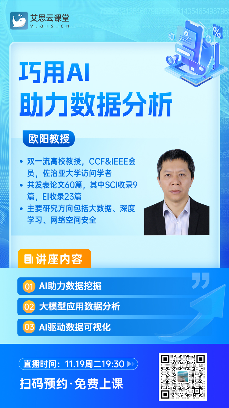 无论你是科研工作者,渴望借助 AI 提升数据分析效率;还是学生,希望了解前沿技术开拓视野,都不容错过。快来加入我们,一起探索 AI 与数据分析的无限可能,让科研之路更加精彩!
